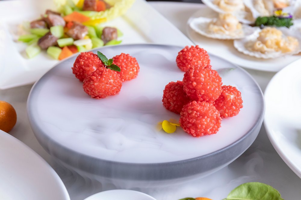 除了兩款福袋,另外還有5款年夜飯可以選擇,“迎春接福宴”、“闔家團圓宴”、“萬事如意宴”、“花開富貴宴”以及“金玉滿堂宴”。金茂深圳JW萬豪酒店中餐廳主廚劉師傅精心設計的賀歲菜肴除了擺盤講究之外,亦道道有講究。如:寓意“風生水起”的三文魚生撈起,以三文魚生為主要食材,配以六款色彩繽紛的蔬菜絲,享用時眾賓客齊齊用筷子高高撈起,在開席即可討個“越撈越旺”的好彩頭!還有上菜時冒出“仙氣”的爆汁紅顏妃子笑,寓意“吉祥如意”、寓意“牛氣沖天”的香芹腰果牛肉粒、“年年有余”的清蒸老虎斑、“五谷豐登”的總廚鮑汁炒飯等多款吉祥菜式。