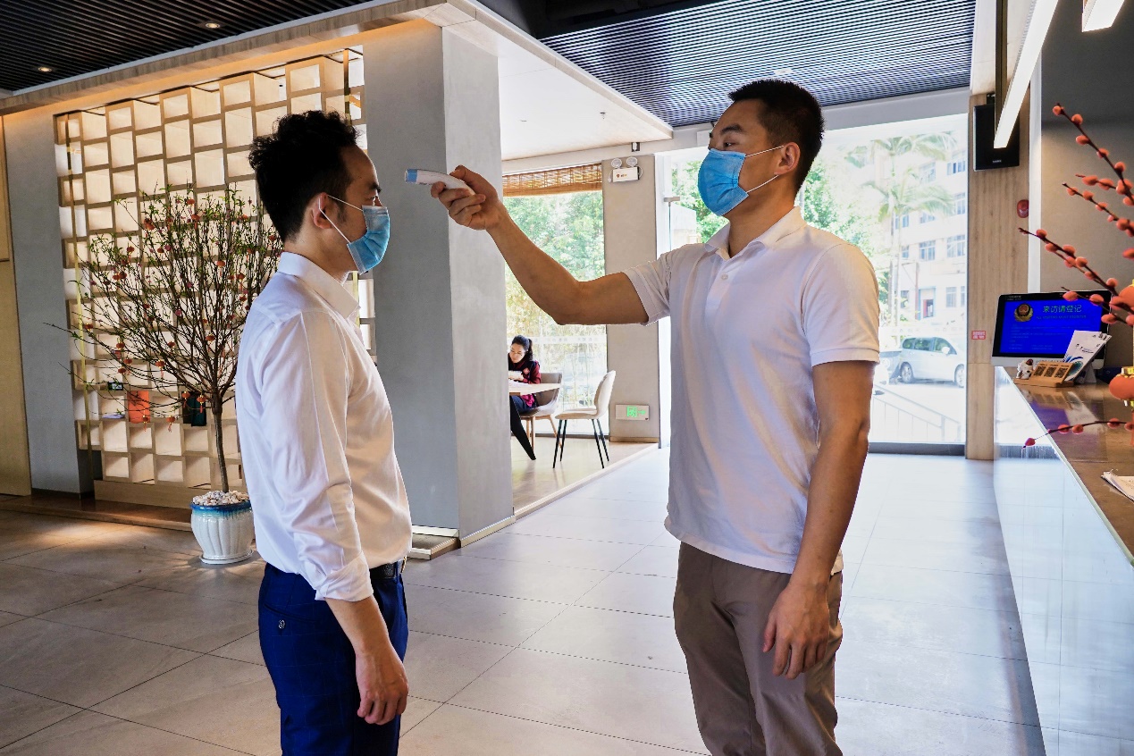 疫情未止,隔離酒店仍在運轉中,隔離的客人剛安全送走一波,又匆匆迎來另一波,楊超林來不及歇口氣,就像不知疲倦的“超人”一樣,轉身又精神抖擻地投入到下一輪的緊張戰斗中。