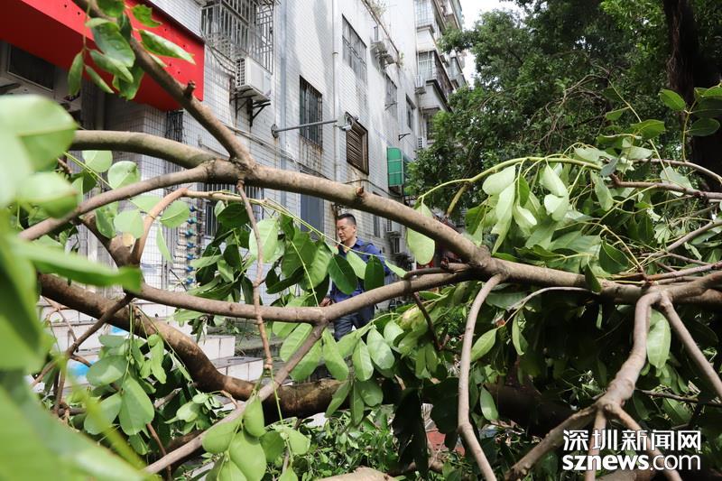 2018年9月17日10點04分,商報東二路,一位行人走過倒塌的樹木前。(攝影:楊浩翰)