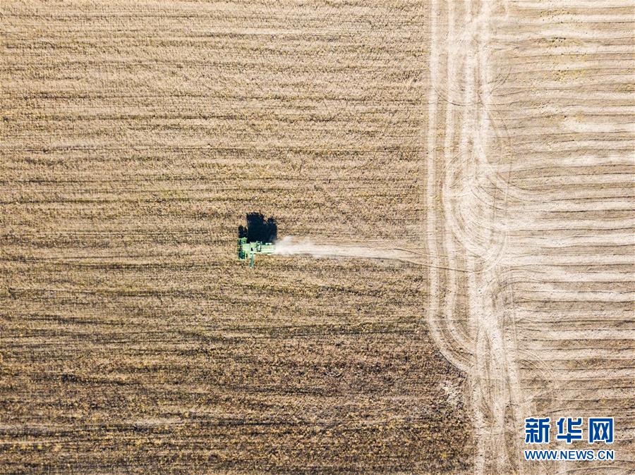 從空中俯瞰俄羅斯猶太自治州比羅比詹市附近的大豆農場(10月19日攝)。 新華社記者張若玄攝