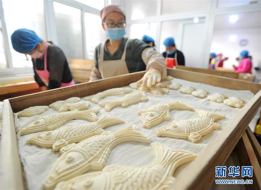 1月31日,河北黃驊市一家面花作坊的工人將制作好的面花擺放在蒸屜里。 河北黃驊市有著過年蒸面花的習俗。春節前夕,當地面花制作工廠加班加點制作面花,供應春節市場。 新華社記者牟宇攝