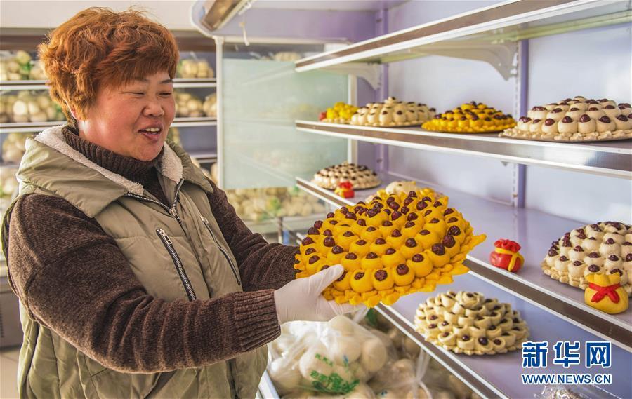 1月25日,在河北棗強一家食品公司的門市部,顧客在挑選花糕。 春節臨近,河北省棗強縣面食加工廠的面點師傅們忙著趕制花糕、花饃等傳統面食,以供應節日市場。當地有過年蒸花糕、做花饃的習俗,寓意步步登高,生活一年比一年好。 新華社記者 李曉果攝