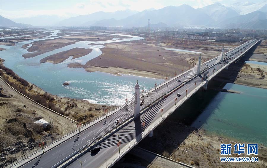 拉薩市環城路納金大橋段(4月3日無人機拍攝)。 新華社記者 晉美多吉 攝