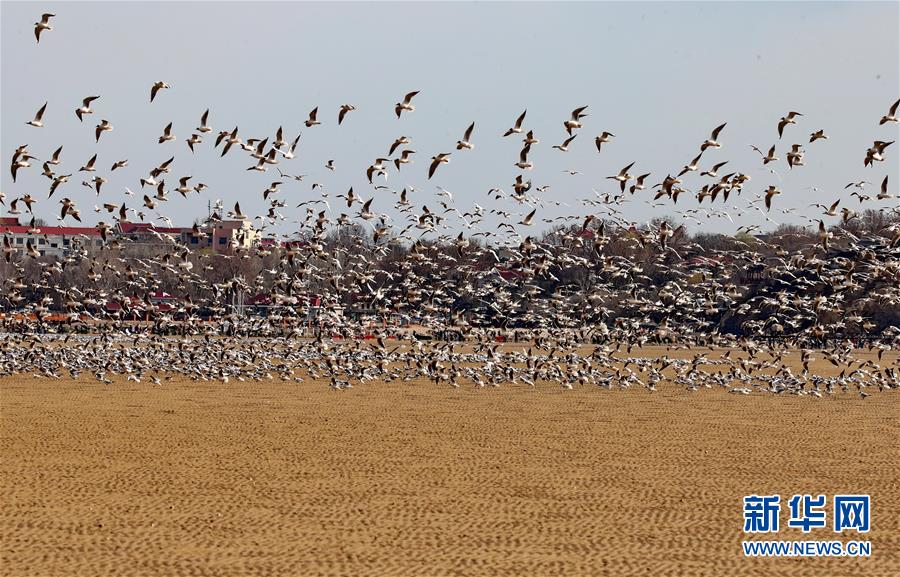 4月4日,一群候鳥在秦皇島市沿海濕地飛翔、休憩。近日,大批候鳥飛抵河北省秦皇島市沿海濕地,出現“萬鳥臨?!逼嬗^。秦皇島沿海濕地鳥類食物豐富,每年春、秋兩季,大批候鳥遷徙經過這里。新華社記者 楊世堯 攝