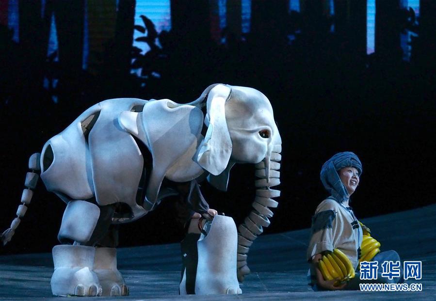 5月15日在上海美琪大戲院拍攝的新版大型人偶舞臺劇《最后一頭戰象》劇照。 當日,作為第12屆中國藝術節的參演劇目,大型人偶舞臺劇《最后一頭戰象》在經過4次硬件技術升級和故事修改后亮相上海美琪大戲院。 新華社記者 任瓏 攝