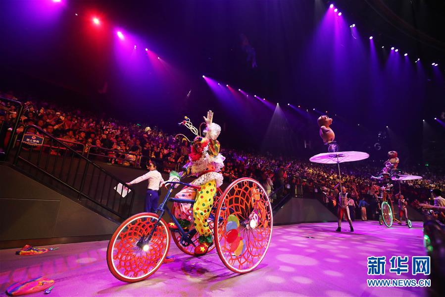 11月16日,演員在第六屆中國國際馬戲節開幕式上表演節目。新華社記者盧燁攝