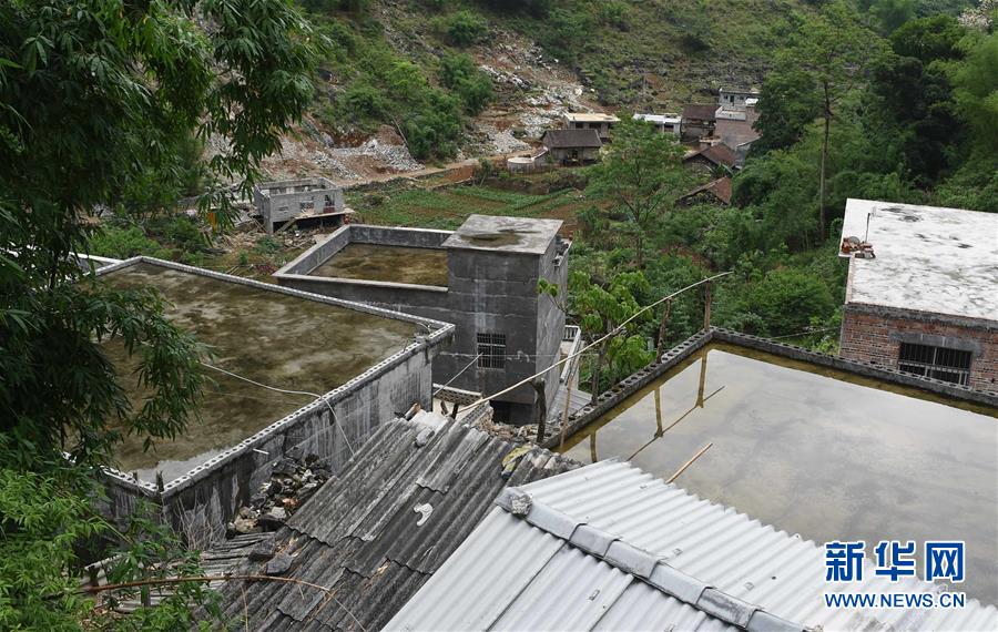 在廣西大化瑤族自治縣板升鄉弄勇村弄朝屯,房頂上的積水曾經是村民的飲用水(2015年5月4日攝)。如今,弄朝屯幾乎家家戶戶都修建了家庭水柜。新華社記者黃孝邦攝