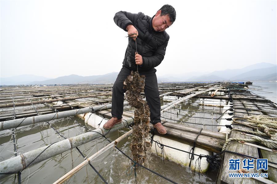寧德福安市溪邳村村民在查看海上養殖的牡蠣(3月7日攝)。新華社記者姜克紅攝