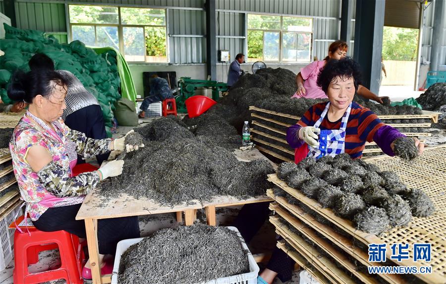 8月22日,在福安市溪邳村的海產品加工廠,村民對海帶進行粗加工。新華社記者林善傳攝