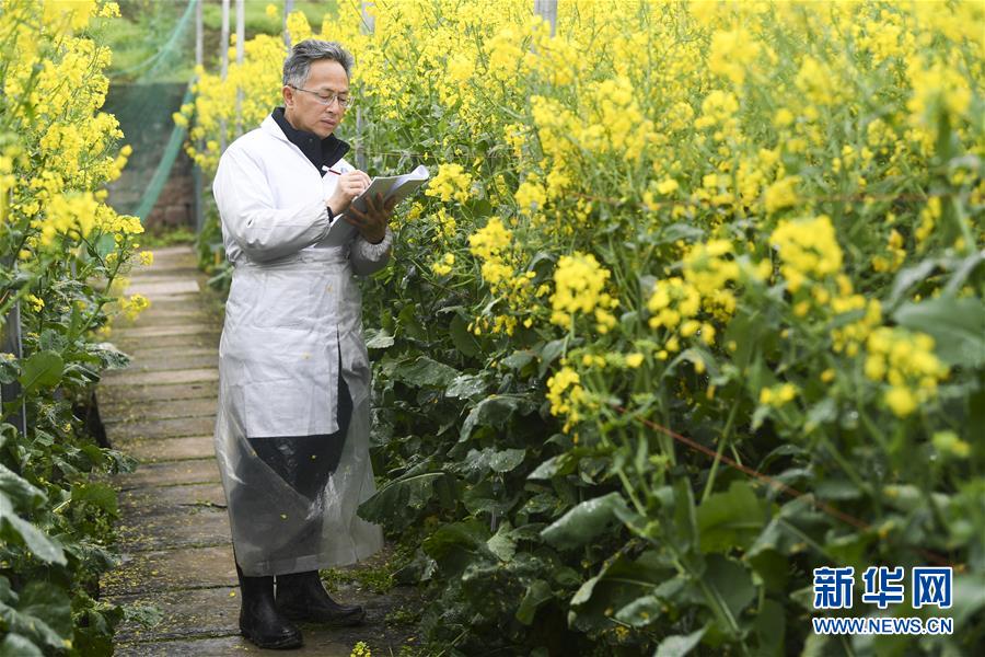 3月5日,重慶市油菜工程技術研究中心負責人李加納教授在觀察記錄油菜生長情況。時下正值油菜花期,重慶市油菜工程技術研究中心的農學專家帶領學生和技術工人搶抓農時,推進油菜科研和育種工作。新華社記者 王全超 攝