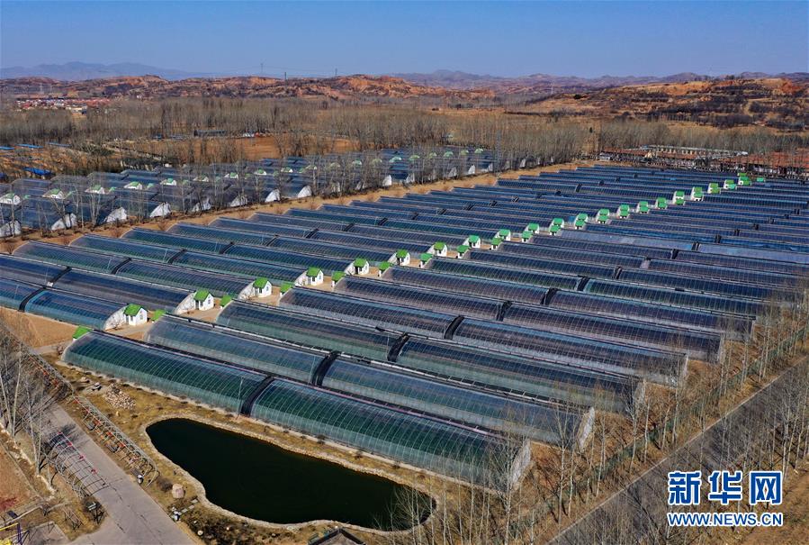 這是3月18日拍攝的中國鐵路太原局集團有限公司新創云竹生態農業園內的蔬菜大棚(無人機照片)。 新華社記者 曹陽 攝