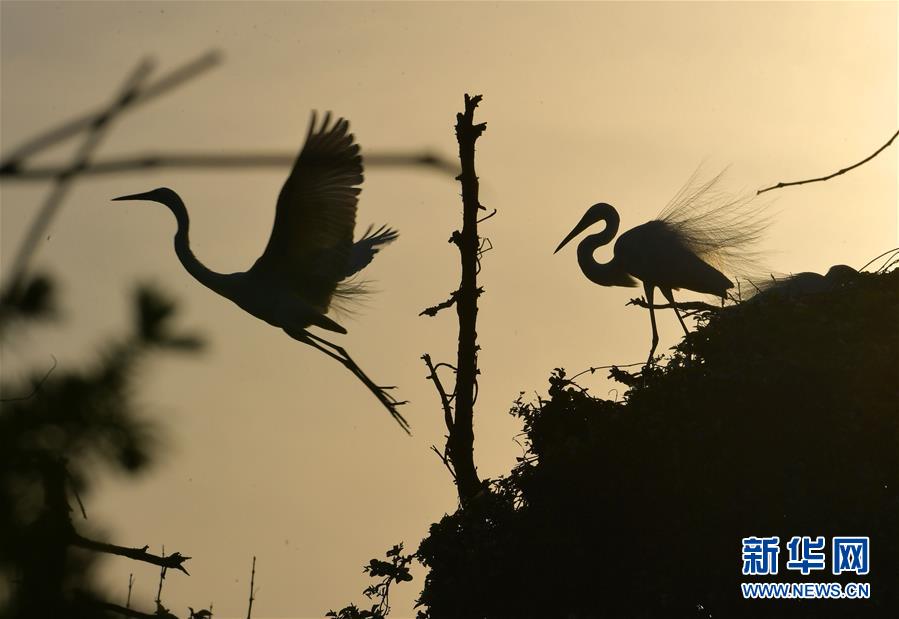 江西南昌“鷺鳥王國”生機勃勃
