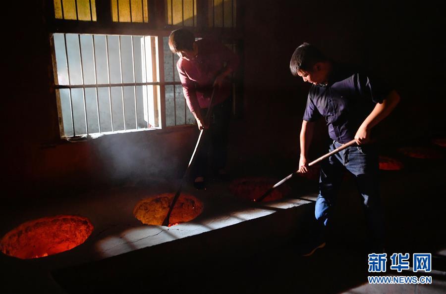 方舟(右)跟著母親游玉瓊學習巖茶的木炭烘焙法(5月10日攝)。