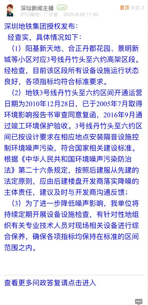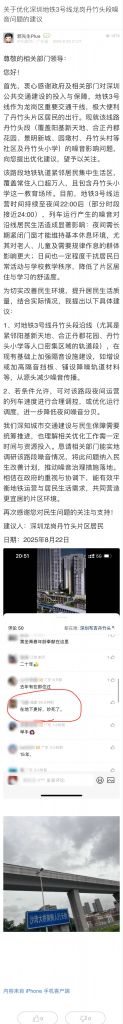 33. 帖文《關于優化深圳地鐵3號線龍崗丹竹頭段噪音問題的建議》