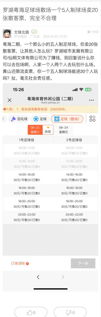35. 帖文《羅湖粵海足球場散場一個5人制球場賣20張散客票,完全不合理》