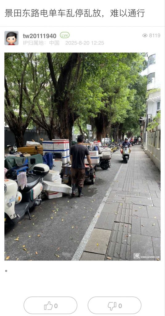12. 帖文《景田東路電單車亂停亂放,難以通行》