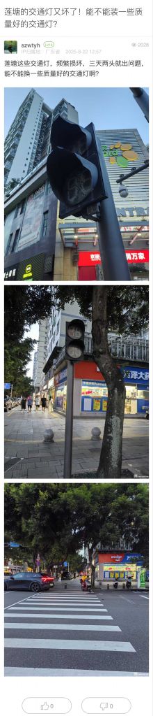 27. 帖文《蓮塘的交通燈又壞了!能不能裝一些質量好的交通燈?》
