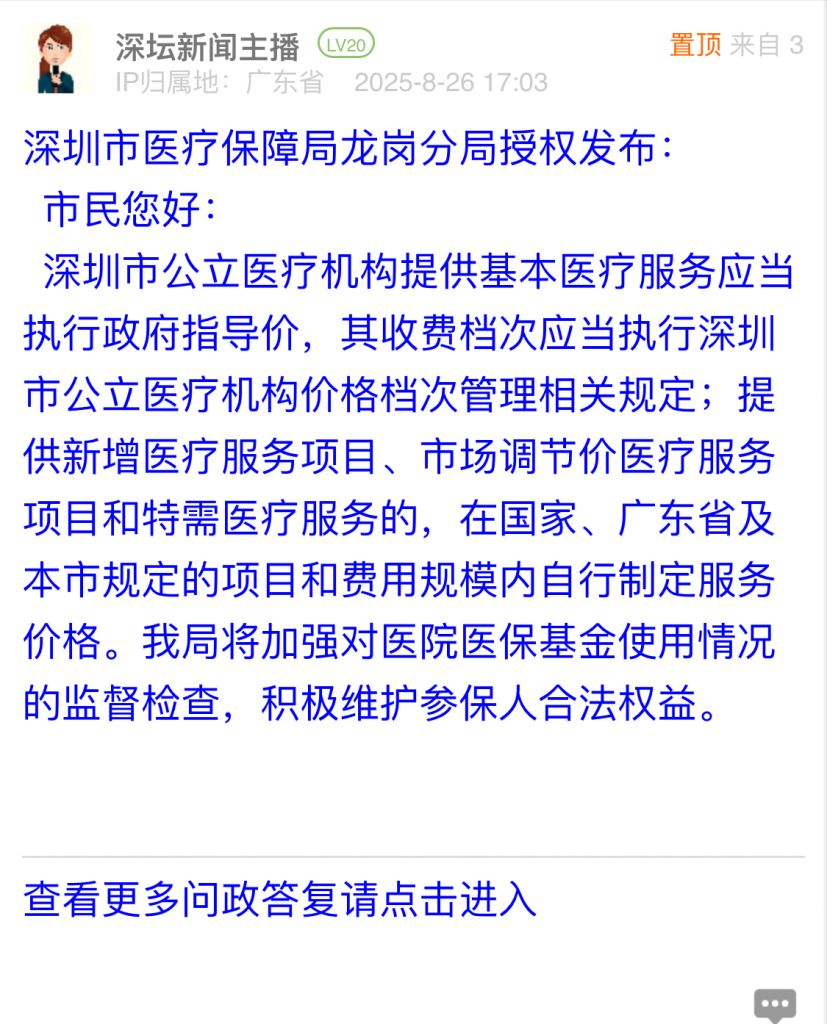涉及單位:深圳市醫療保障局龍崗分局