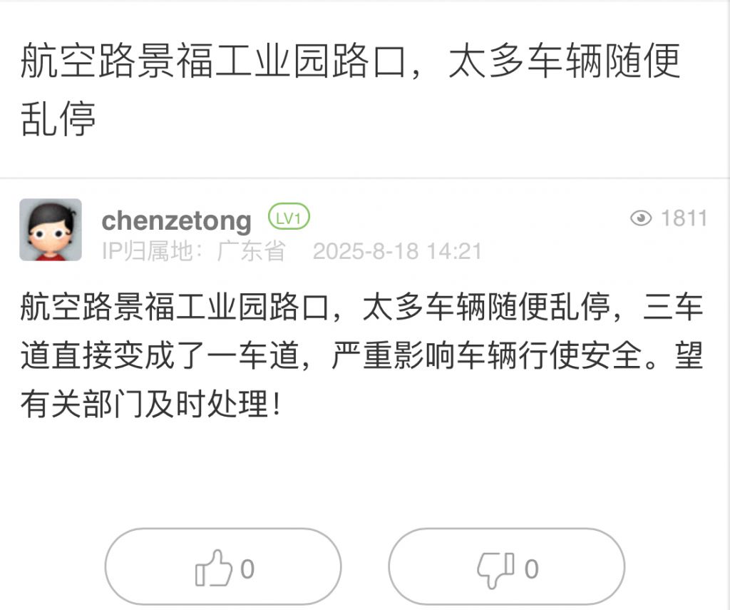 2. 帖文《航空路景福工業園路口,太多車輛隨便亂停》
