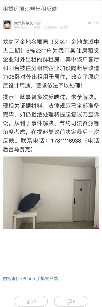 36. 帖文《租賃房屋違規出租反映》